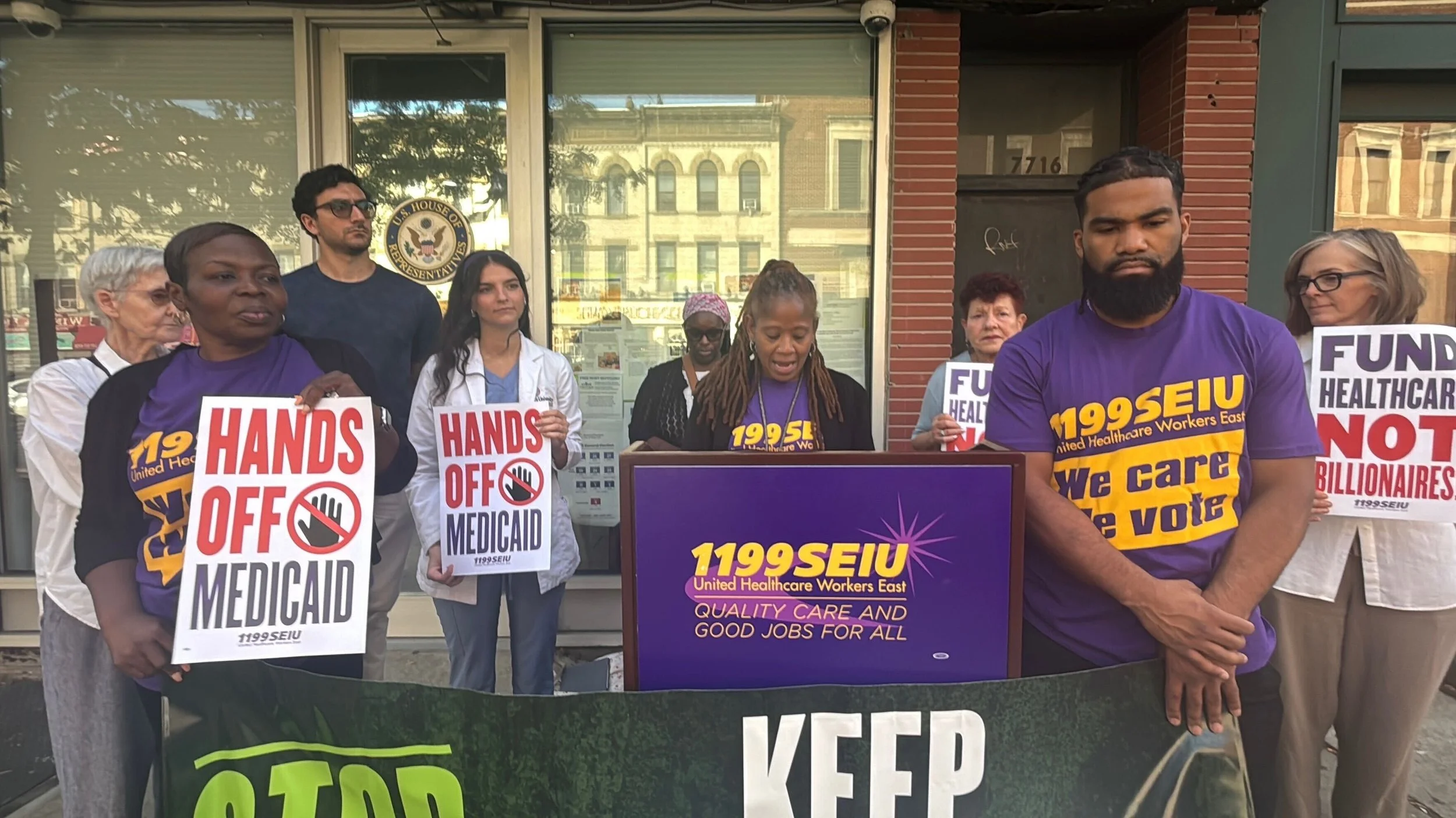 BROOKLYN, NEW YORK — This Tuesday, 1199SEIU healthcare workers, Indivisible Brooklyn, Empire State Voices, and Healthcare Education Project advocates rallied outside Rep. Nicole Malliotakis’ Brooklyn district office, urging the Congressmember to avert a government shutdown by making permanent healthcare tax credits that support the health of millions of Americans.